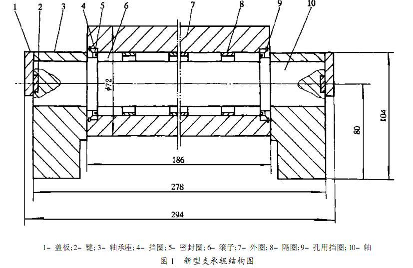 新型支承輥在軋輥的尺寸允許條件下,采用滾針及多排圓柱滾子作徑向支承,采用單列球軸承作為軸向定位有利支承輥的強(qiáng)度和剛性的提高。